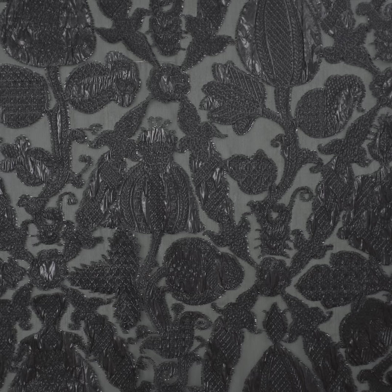 T25M12463 | Organdi Jacquard de Soie Motif Floral Fils Coupés